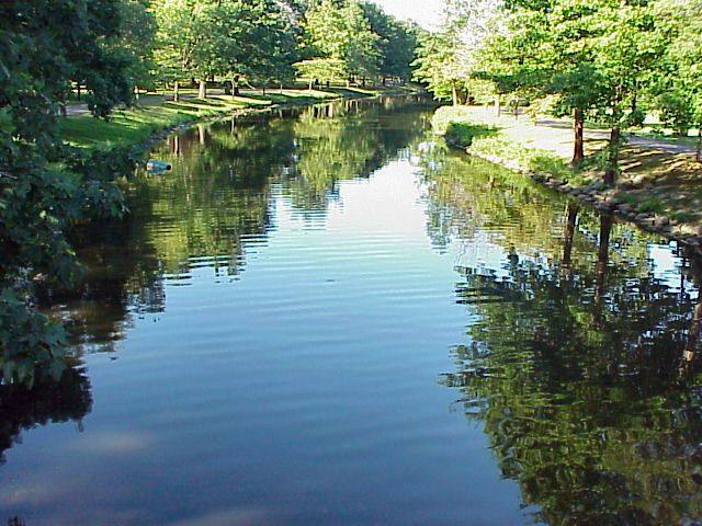 There are many trees lining the banks of the river proving shade and beauty for all visitors.