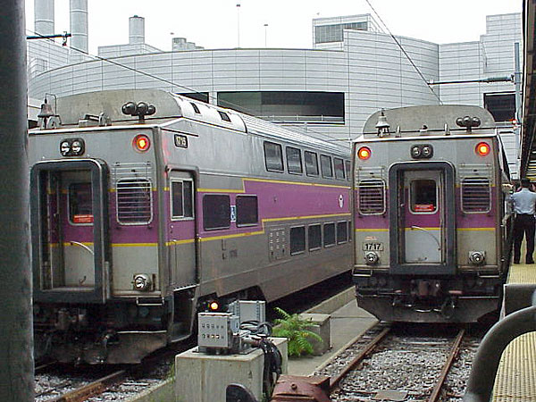 A pair of MBTA bi-level coaches at South Station |